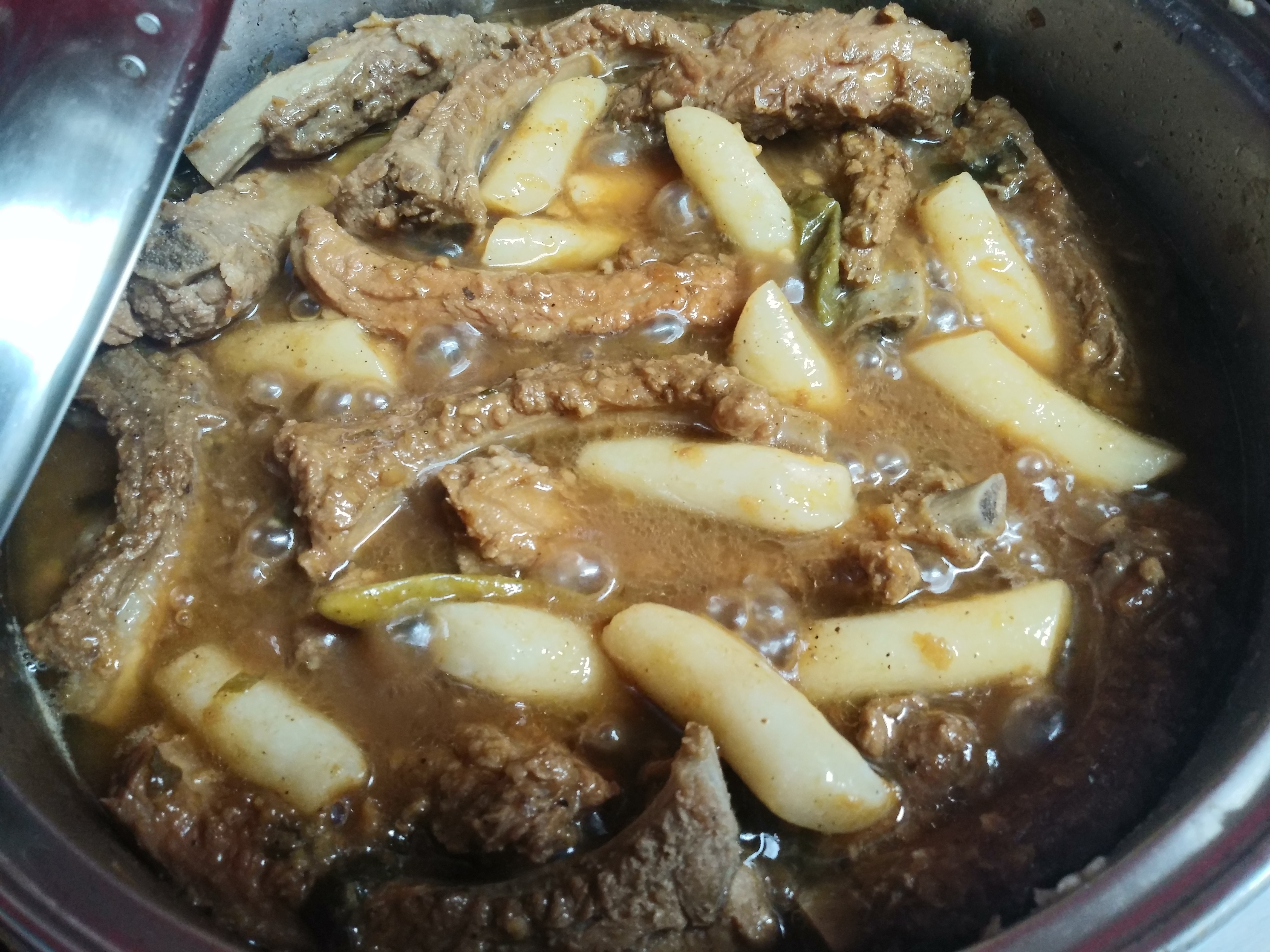 오랜만에 마트에서 등갈비 2팩을 사서 간장 양념으로 졸였습니다. 마침 냉장고에 떡볶이 해 먹고 남은 떡도 있어서 넣어서 먹으니 맛있었습니다.