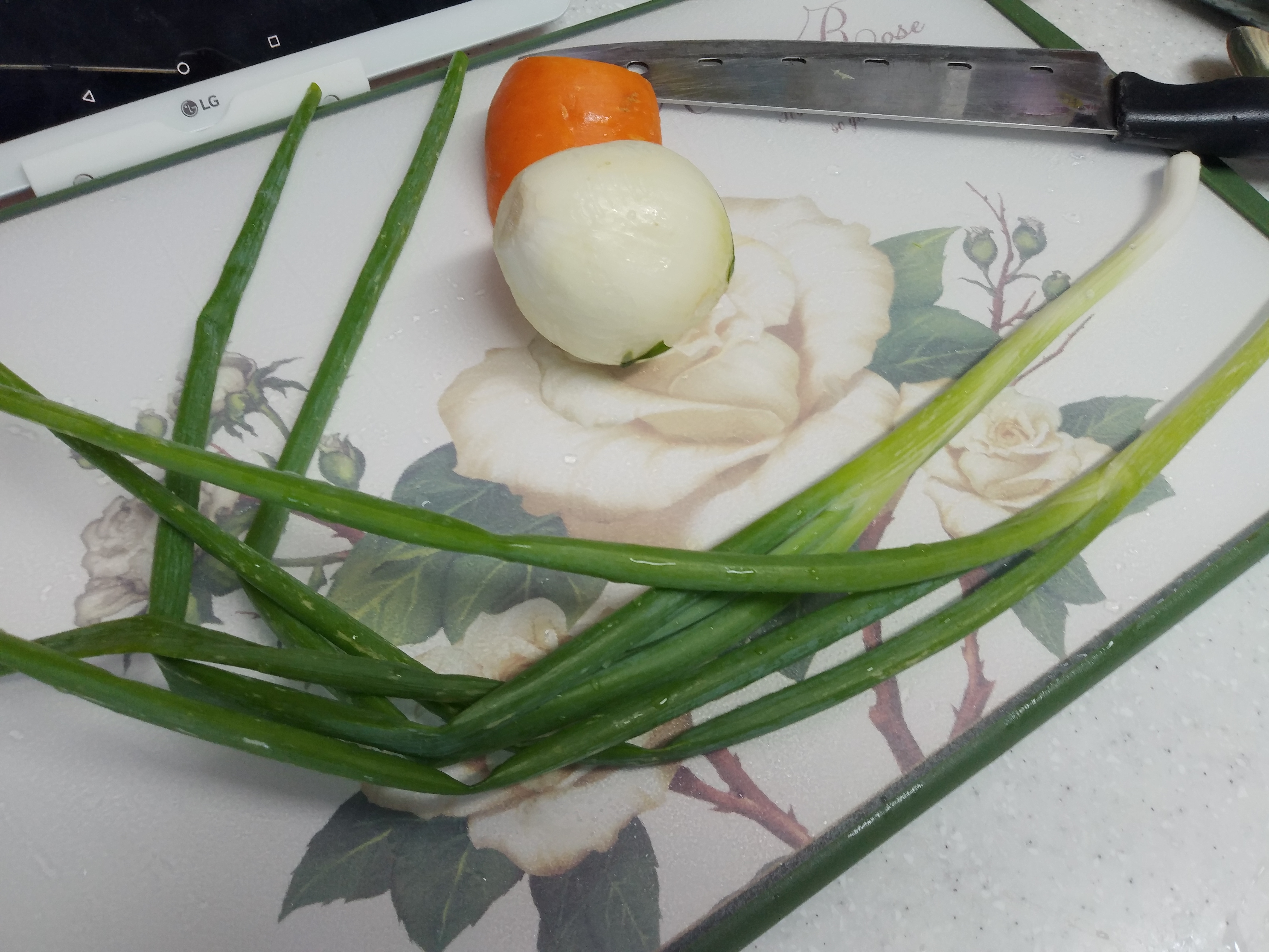 2. 양파와 당근을 채 썰어줍니다. 특히 당근은 얇게 썰어주었습니다.