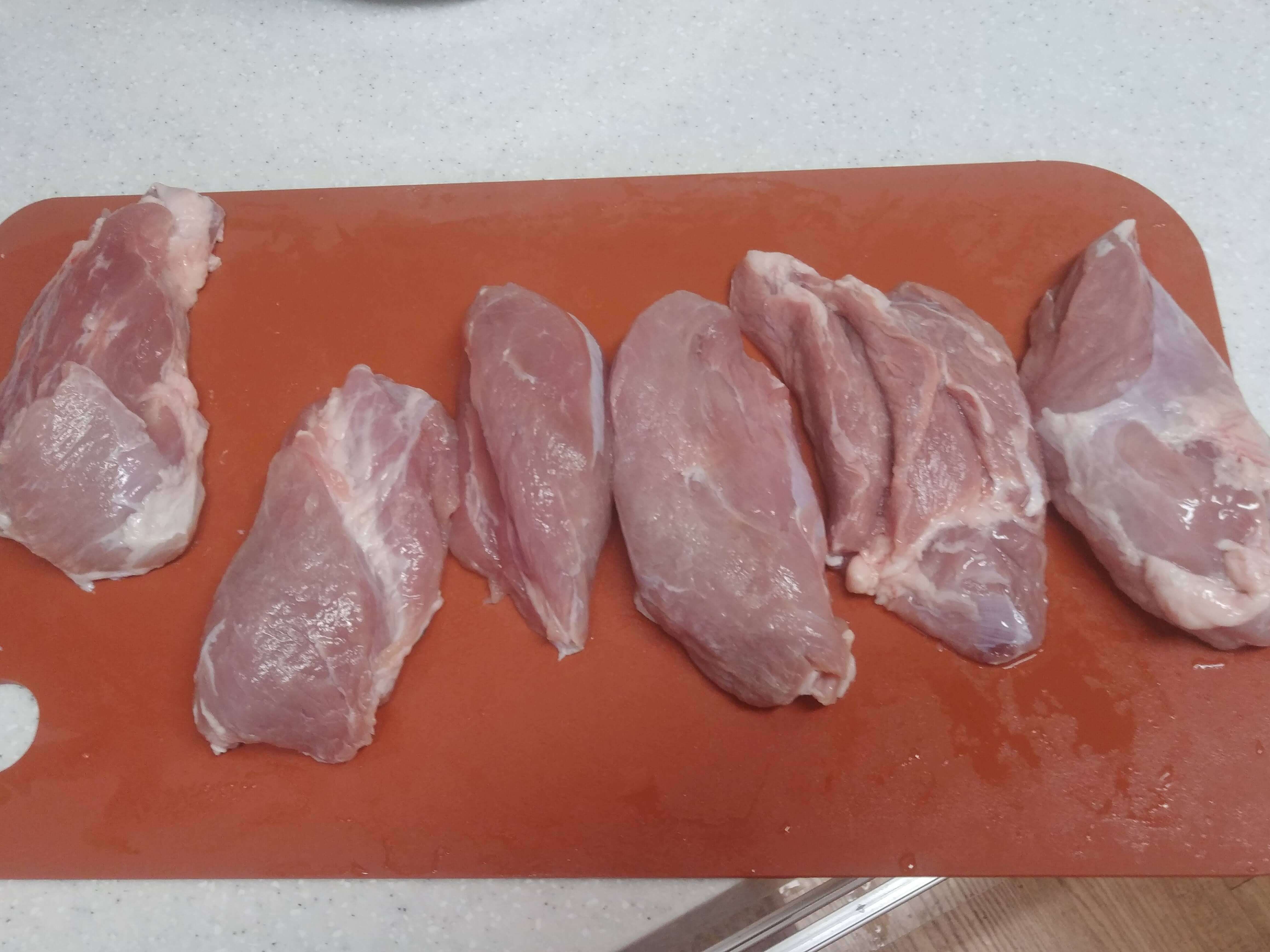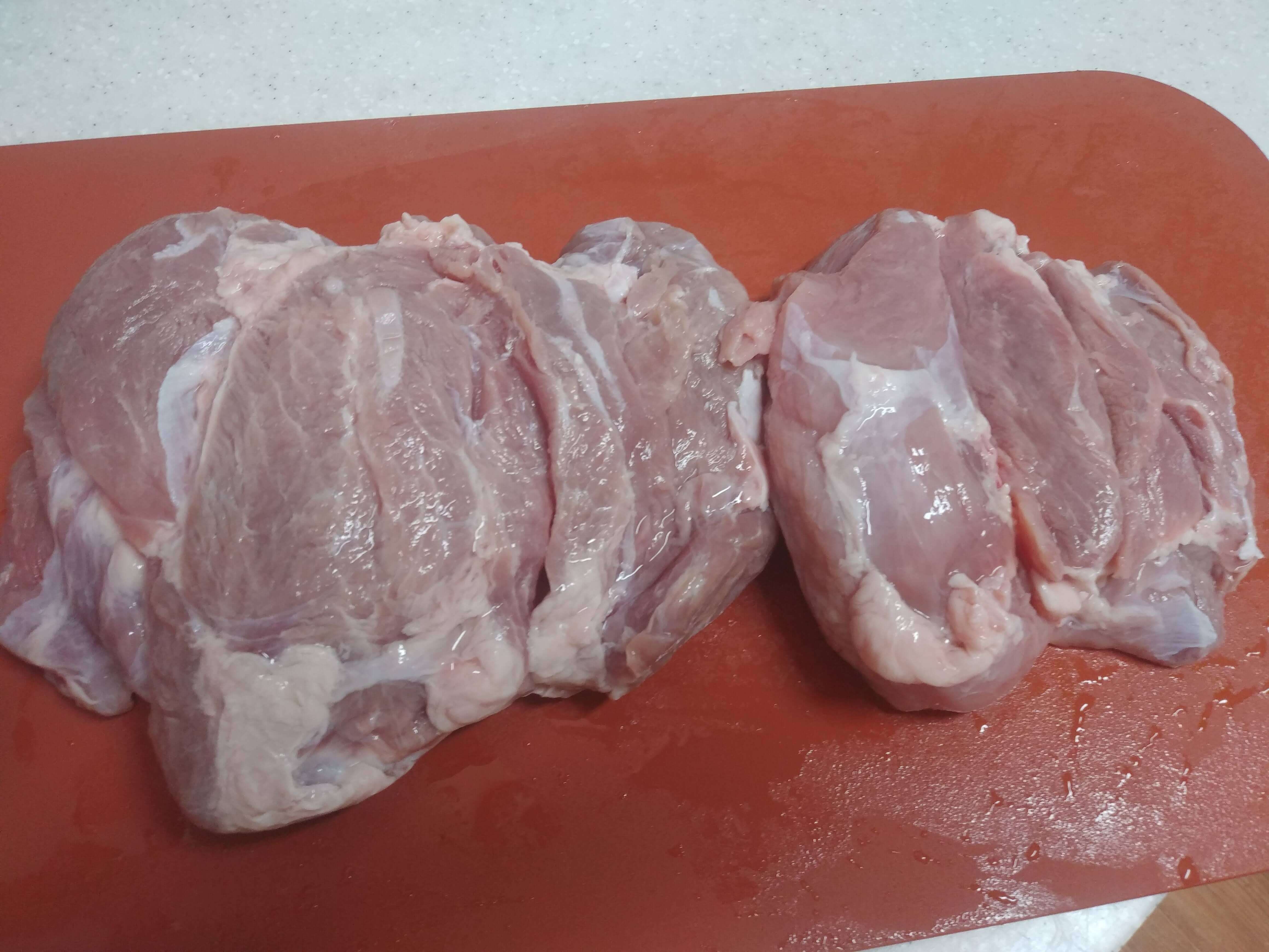 1. 비계가 적은 부위로 돼지고기 사태를 준비했습니다. 6등분 해준후에 비계를 잘라냈습니다.