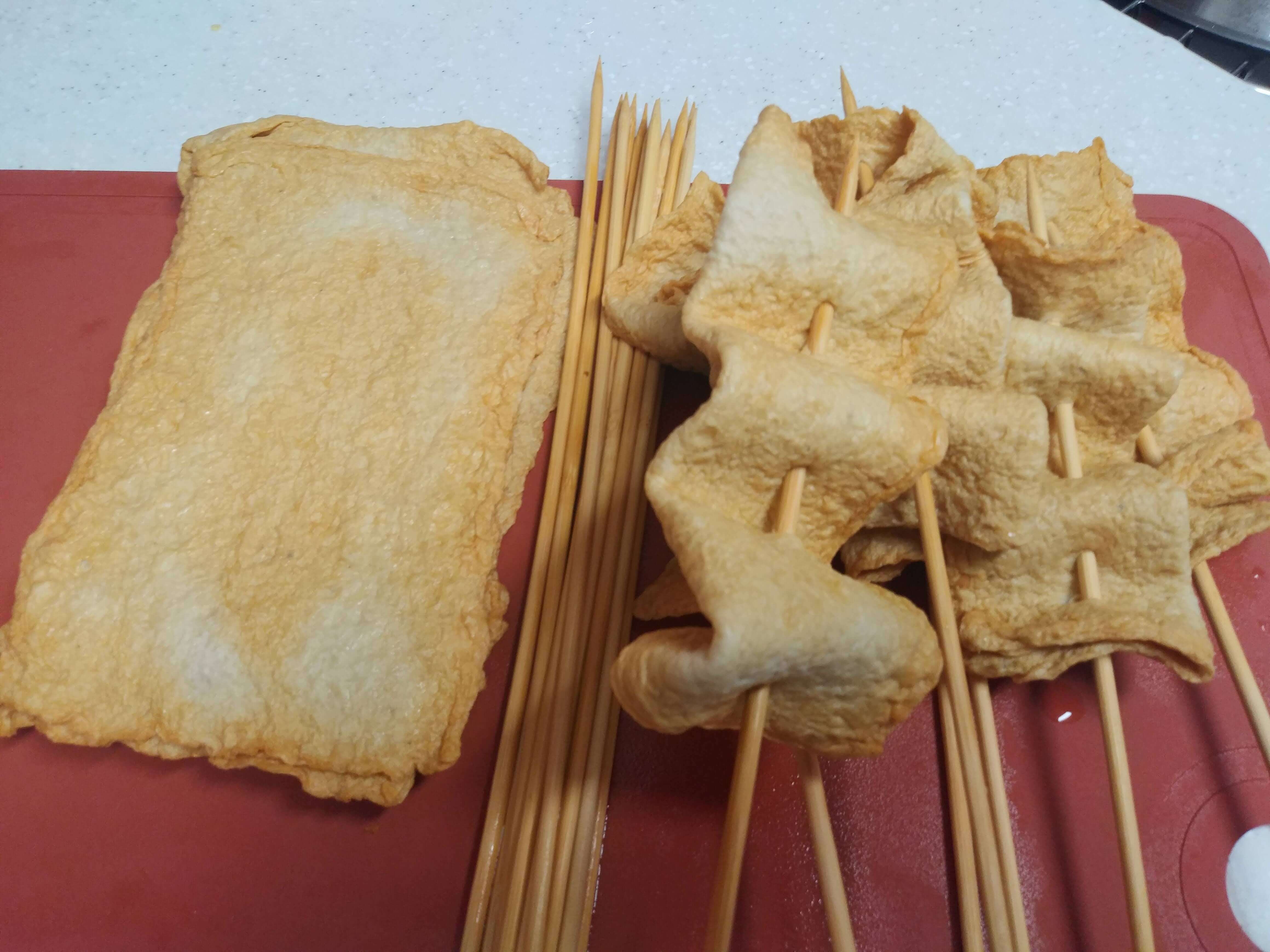 납작 어묵도 꼬치에 끼워줍니다.
