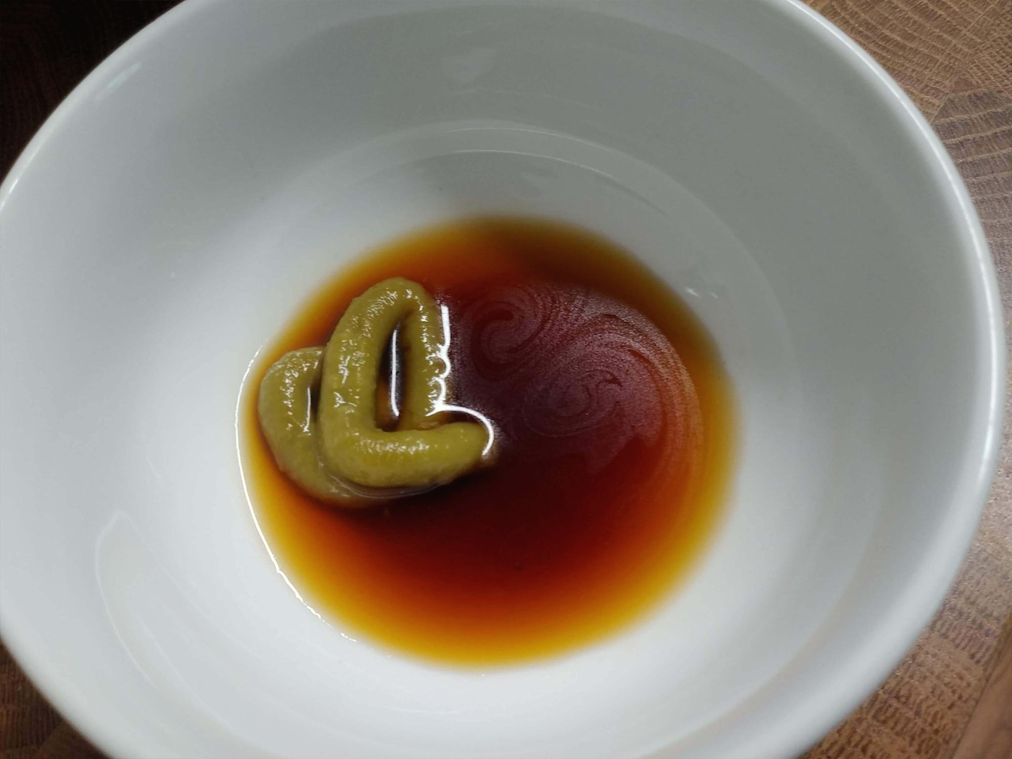 고기 찍어먹을 소스도 만듭니다. 간장 2숟가락, 식초 2숟가락, 설탕 약간에 고추냉이는 원하는 만큼 짜줍니다. 고루 섞어서 준비해둡니다.