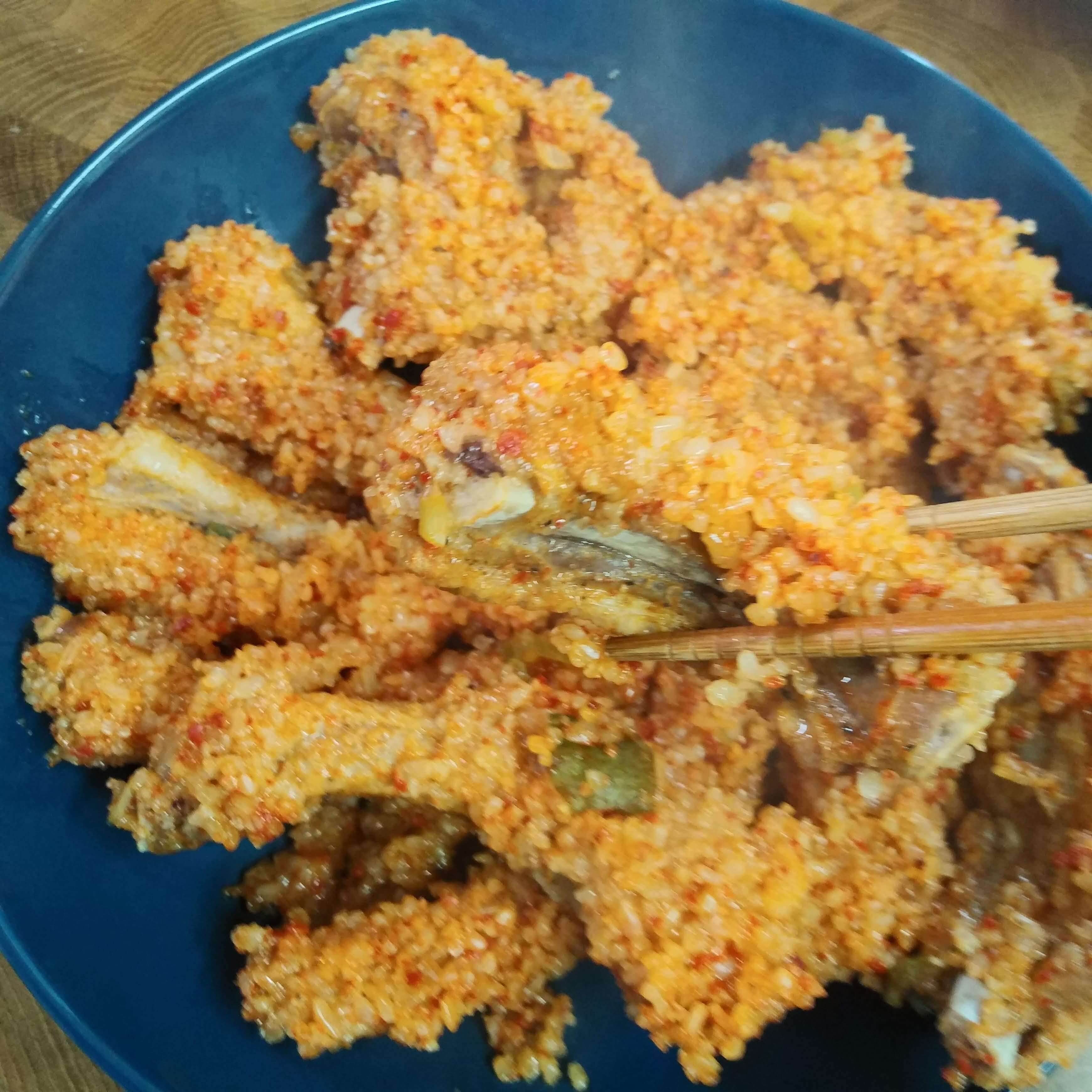 돼지 등갈비를 색다르게 요리해봤습니다. 이연복 셰프의 레시피인데요 간단하게 만들어보고자 생각해낸 요리법이라고 합니다. 불린 찹쌀을 으깨서 가루로 쪄서 분정 갈비라고도 한다네요.