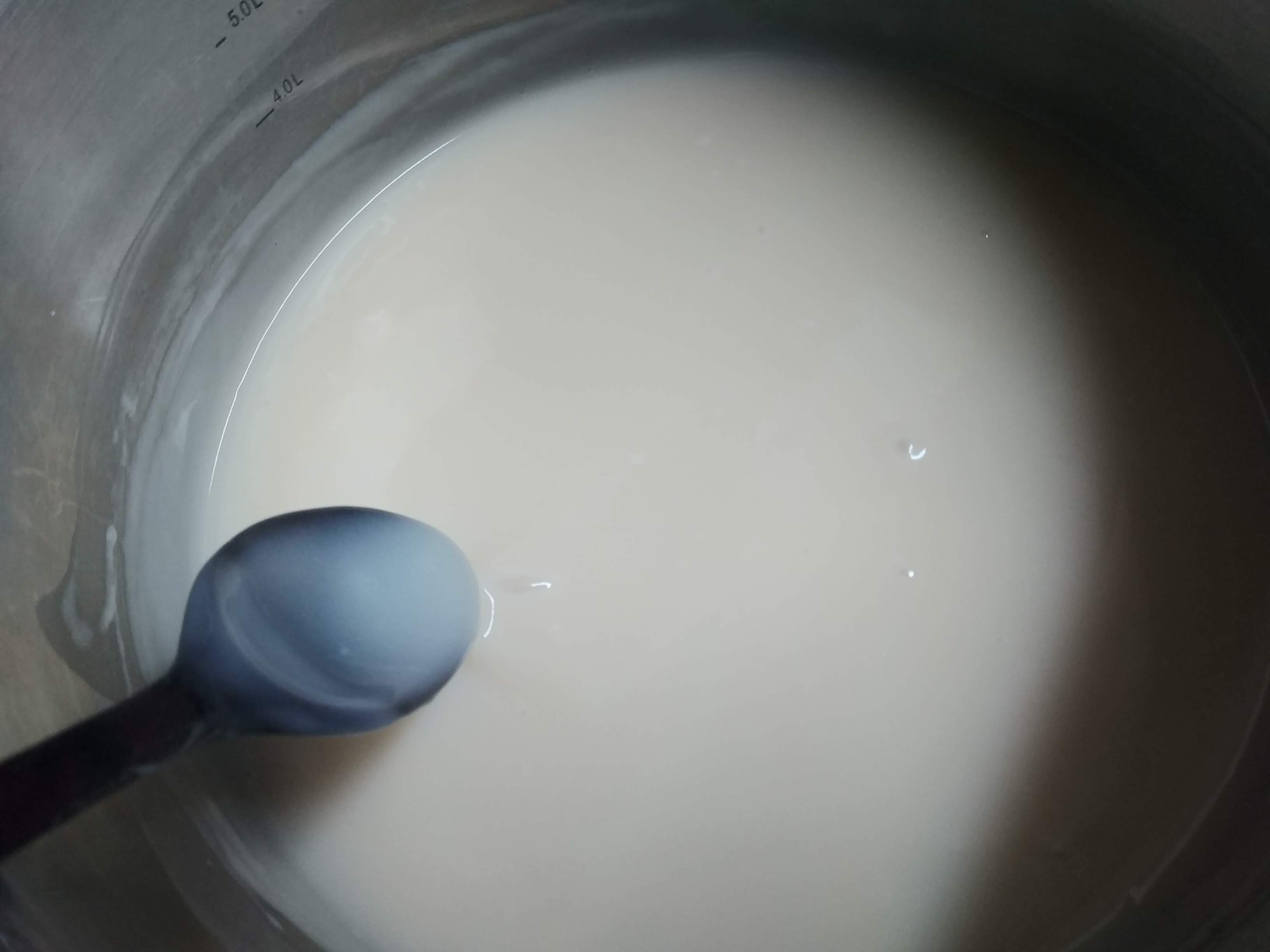 김장하기 전날 육수를 준비하고 그 물로 찹쌀풀을 쑤어서 식혀 준비했어요. 육수에는 황태머리나 파뿌리 등을 더 넣어도 좋을 것 같아요. 육수와 찹쌀가루는 대략 10 : 1의 비율로 맞추어 육수 10컵(1800cc)에 찹쌀가루 180g을 넣고 끓였습니다. (찹쌀가루를 1컵 수북이 담으면 100g 정도 됩니다) 눋지 않게 저어주면서 중약불로 10분정도 끓이면됩니다. 찹쌀풀에 쓰고 남은 육수는 해물팩만 건지고 식혀둡니다. 참 찹쌀풀은 김장할때도 쓰고 남은 갓과 무로 갓김치랑 섞박지를 했는데 거기도 각각 1컵씩 넣었습니다.