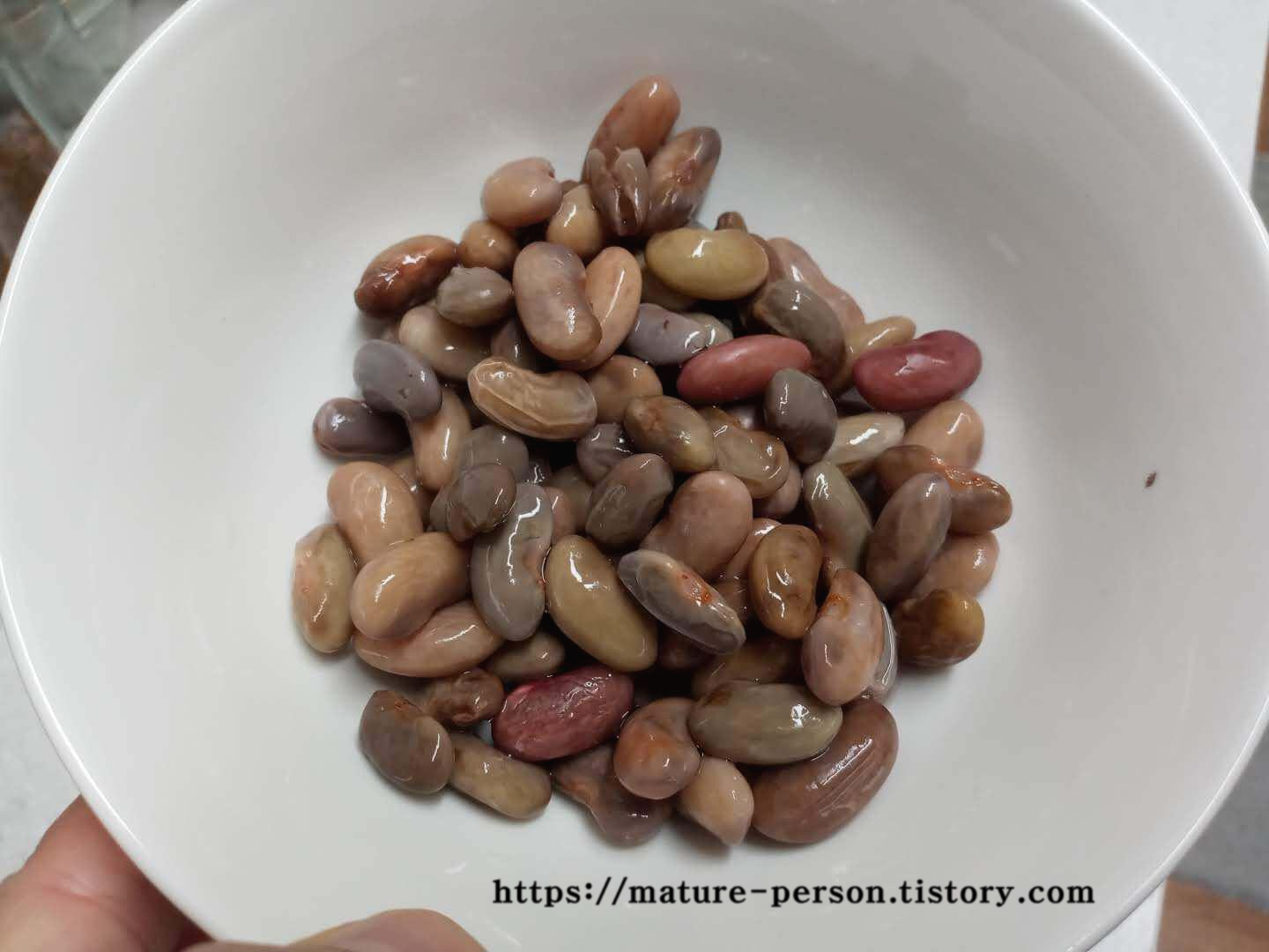 콩(94g) 삶기: 소금 1/3숟가락, 설탕 1/2숟가락